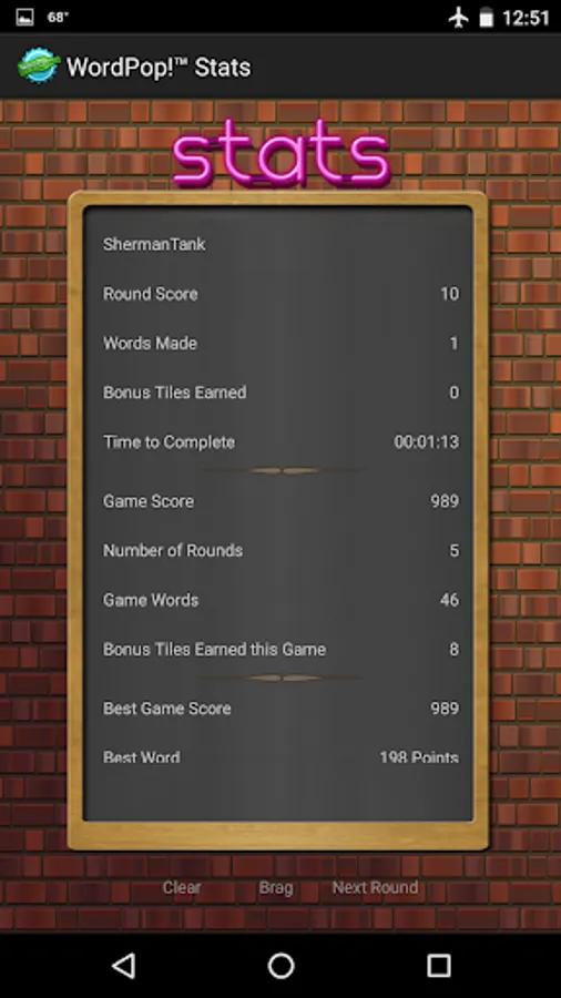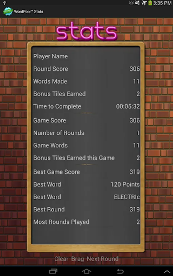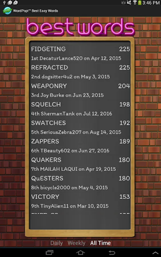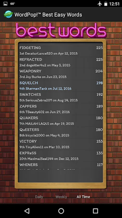 * Best Words screen tracks all your highest scoring words. Show the list to your boss to prove your intelligence.