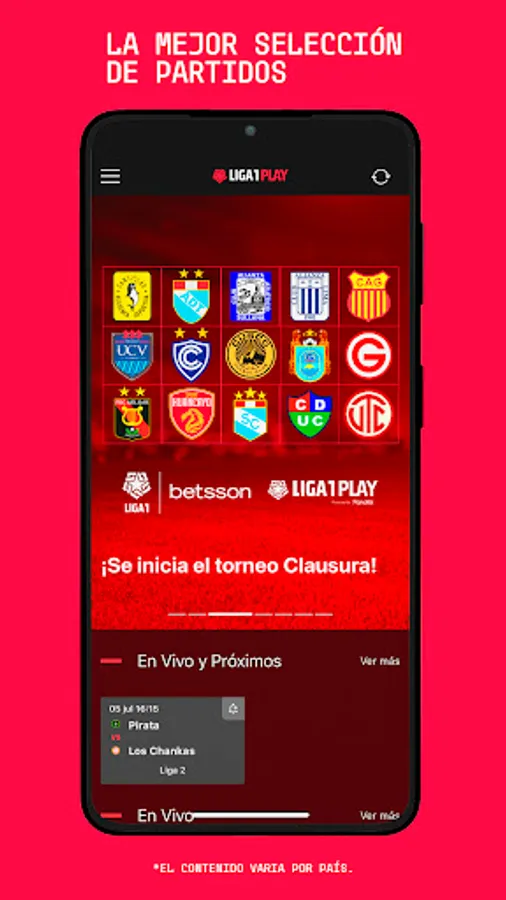 Install the Liga1 Play app and start watching the best soccer in Peru immediately and in HD. Watch live or on demand, in Peruvian Spanish or with ambient sound only (varies by content) matches, highlights, stats and more. Access through multiple devices, without cuts or interruptions. All your information secure.