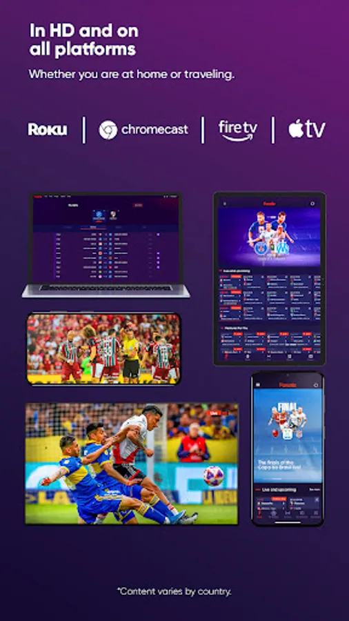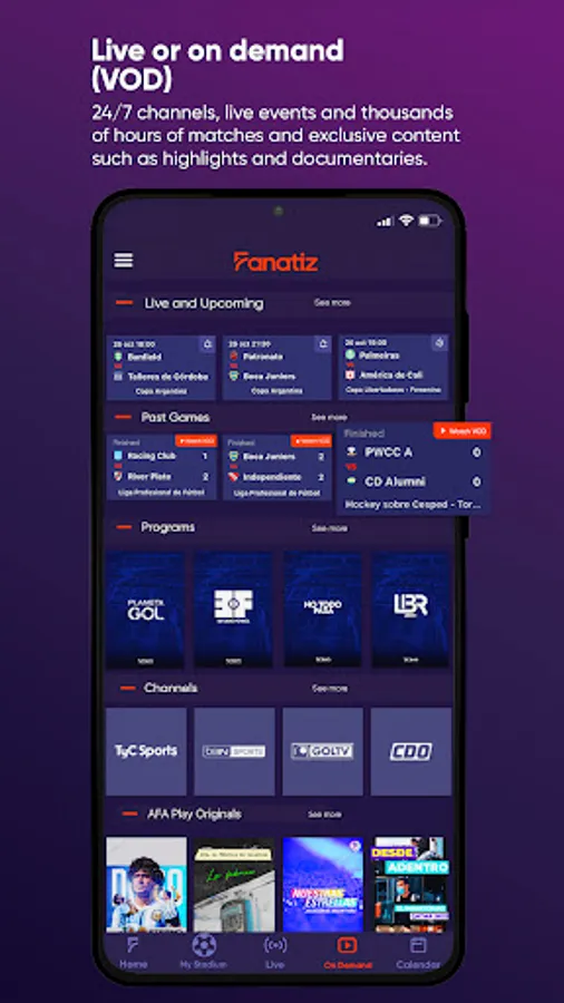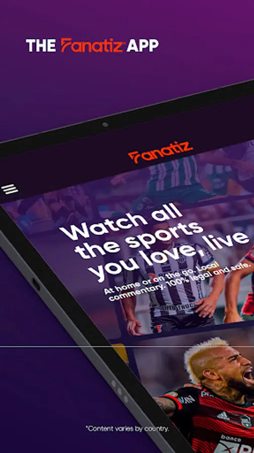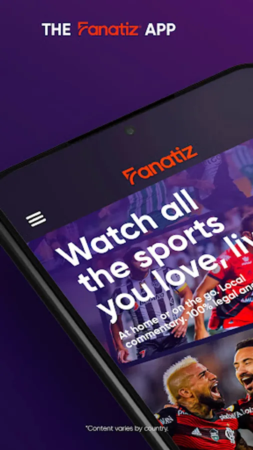 CHECK THE AVAILABLE CONTENT IN YOUR REGION. Register at Fanatiz.com, download the app and start watching the best fútbol live and in HD. No more illegal streams. Watch events, matches, sports channels and much more whenever and wherever you want. Available content may vary depending on your location.