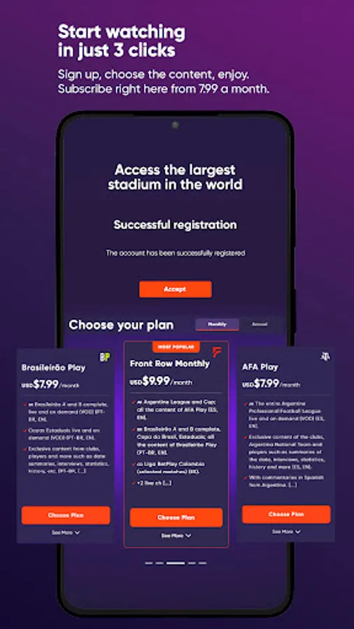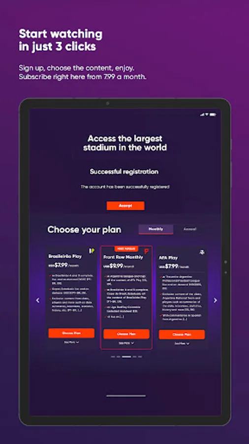 • Fanatiz offers a variety of subscriptions, including daily, monthly, and yearly plans.