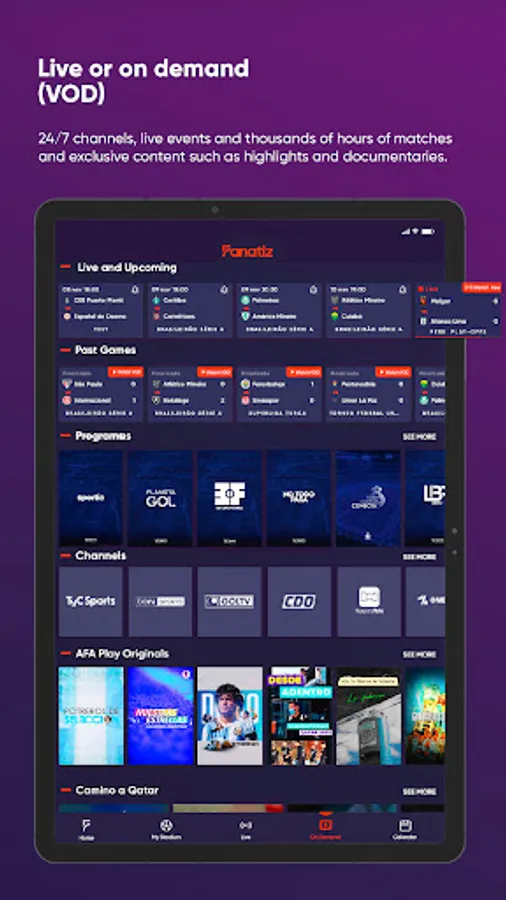 • Fanatiz gives you access to every match and channel available in your country, whenever and wherever you want. All you need is an internet connection.