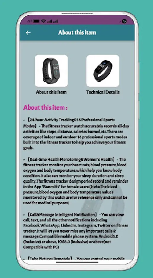 - Contains many pictures to see all designs of Smart Bracelet Fitpro