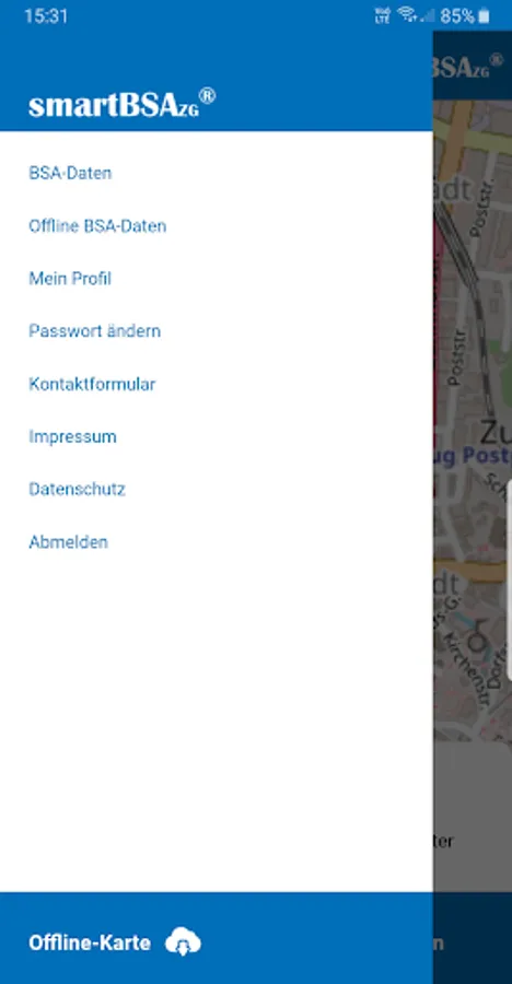The mobile app, as an optimally integrated component of the entire smartBSAzg platform, enables seamless interaction with centrally managed data, regardless of the end device, the location and the connectivity. Thanks to smartBSAzg, the BSA of the cantonal roads in the canton of Zug are digitally and smartly networked - static and decentralized data storage is a thing of the past. Regardless of the situation you are in as a registered user, with this app you always have the correct and current data at hand.