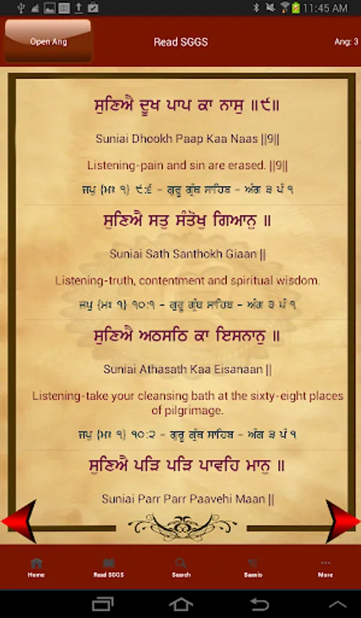2. Daily Nitnem baanis and other Baanis like Sukhmani sahib, Asa di vaar with easy navigation and pagination.