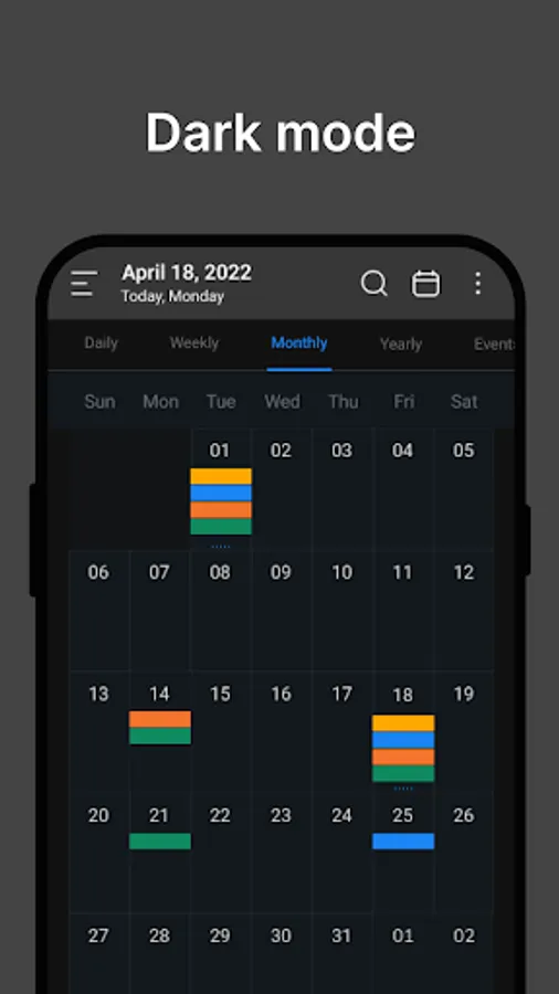 ▪ Monthly, weekly, day, tasks, icon and agenda