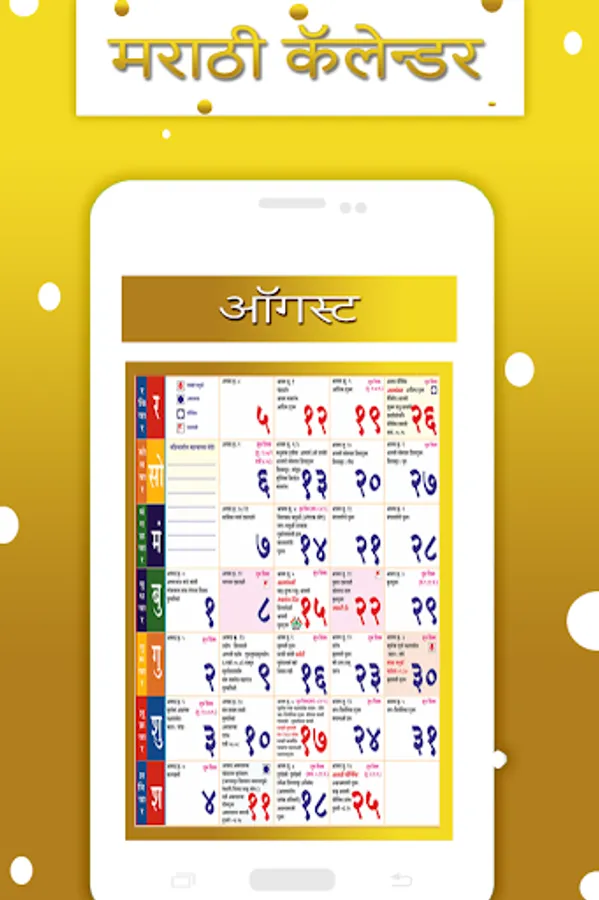 This app contains Marathi language to display days, months and event information.Maharashtra people uses the traditional Marathi Calendar. We provided traditional Calendar within app.