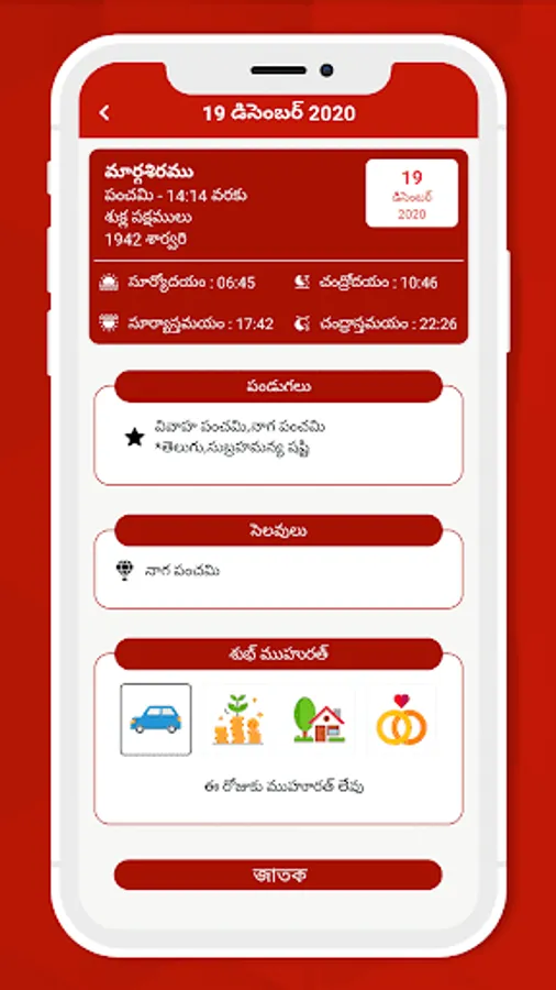 ✔ List of important fasting days and Subha Muhurtham days.