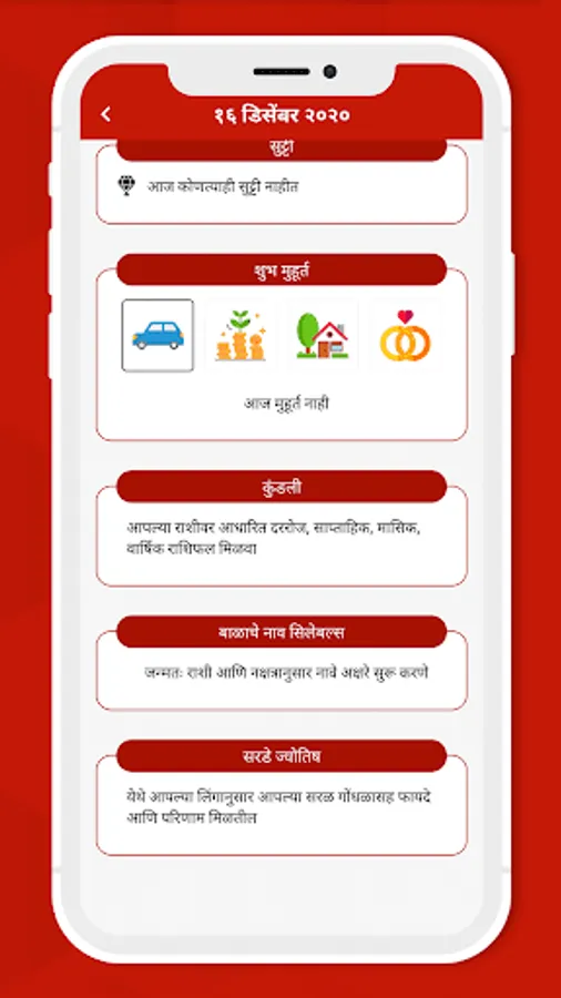 ✔ Complete information about all Indian as well as Marathi Festival and holidays.