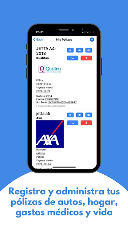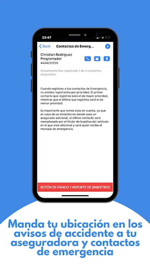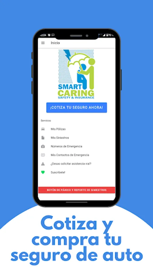 Smartcaring safety & Insurance, quote and buy car insurance with the best insurance companies. You will be able to upload and manage all your insurance policies, regardless of the insurer you have contracted. It also has a panic button with which you can send notifications of accidents or dangerous situations to your emergency contacts and insurers with your location. It also sends you notices of upcoming payments and expiration of validity. You have a directory of insurance companies and another of tow trucks, ambulances and hospitals in the country with their geolocation.