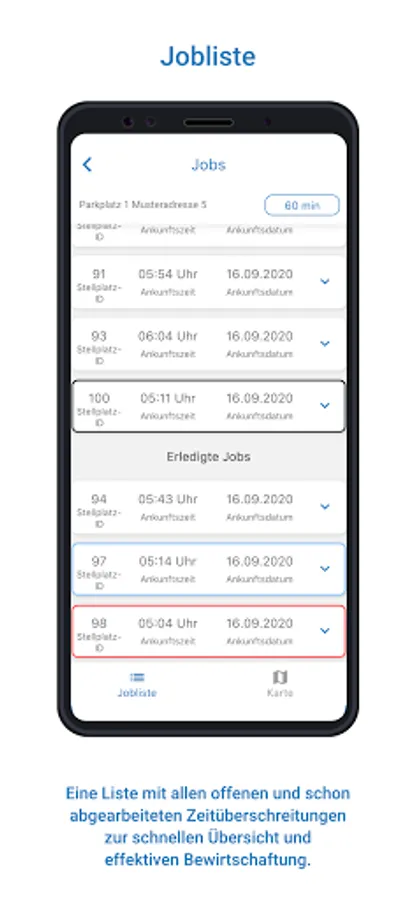 Parking controllers recognize the occupancy status of a parking space by means of color coding. Overdue vehicles are highlighted separately. The exact start of parking can be displayed by clicking on the parking space and you can choose between various options for processing the overdue vehicle