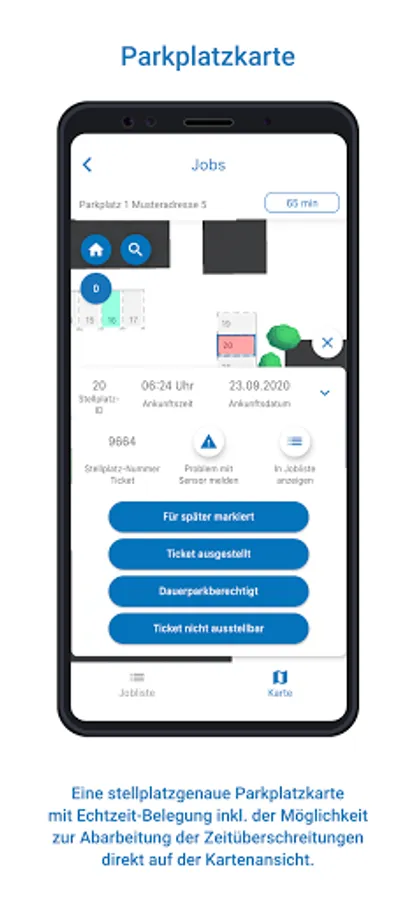 Based on Parking Pilot sensors from Smart City System GmbH, the parking time of vehicles in a parking lot is recorded in real time and clearly displayed.