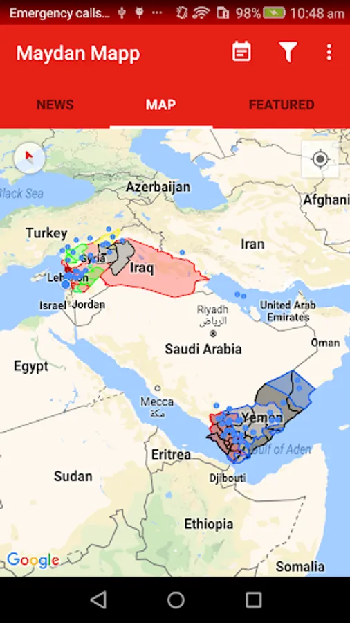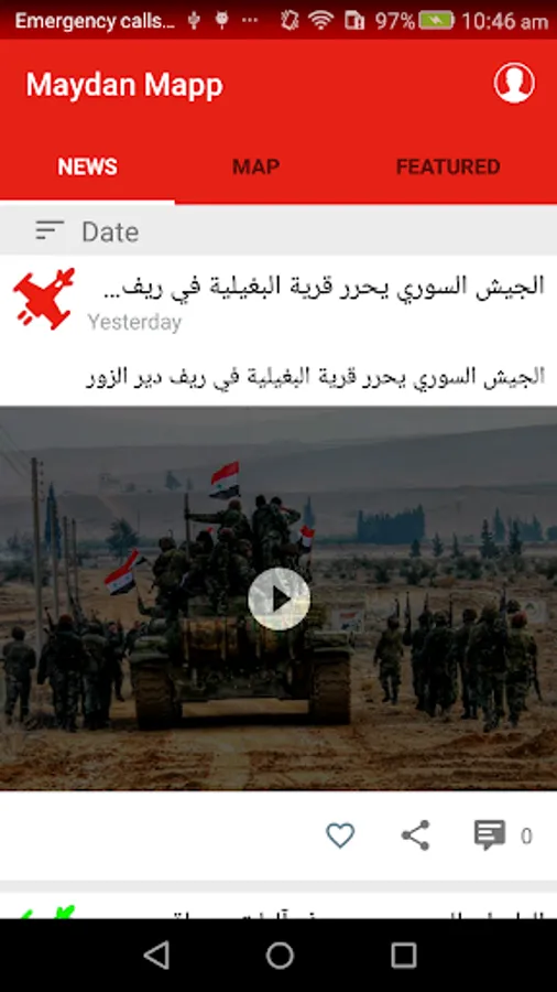 • Maydan application publishes news of wars, conflicts, disasters and accidents from various sources after being checked and verified