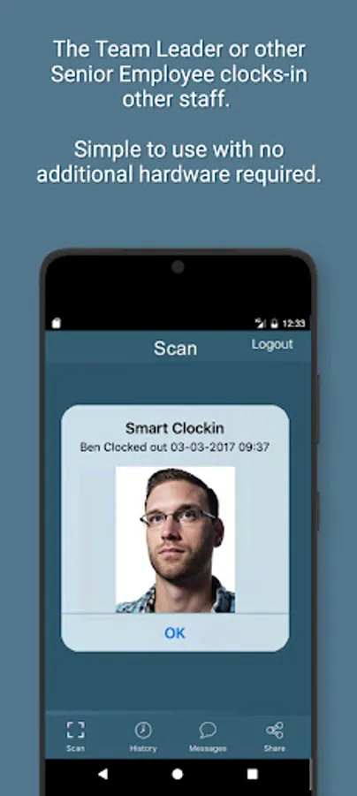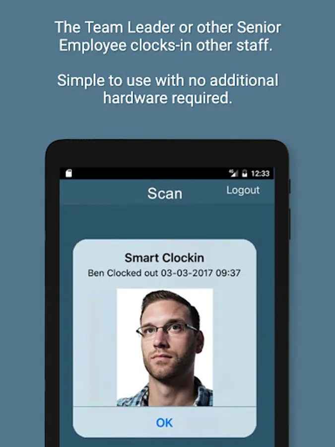 You can scan your staff Clockin Cards in your place of work or on the move or wherever you have your smart phone or tablet with you. The Smart Clockin Manager also includes a smart history tab which time and date stamps all clockin and clock out times, and the results are also stored within your online Smart Clockin online account.