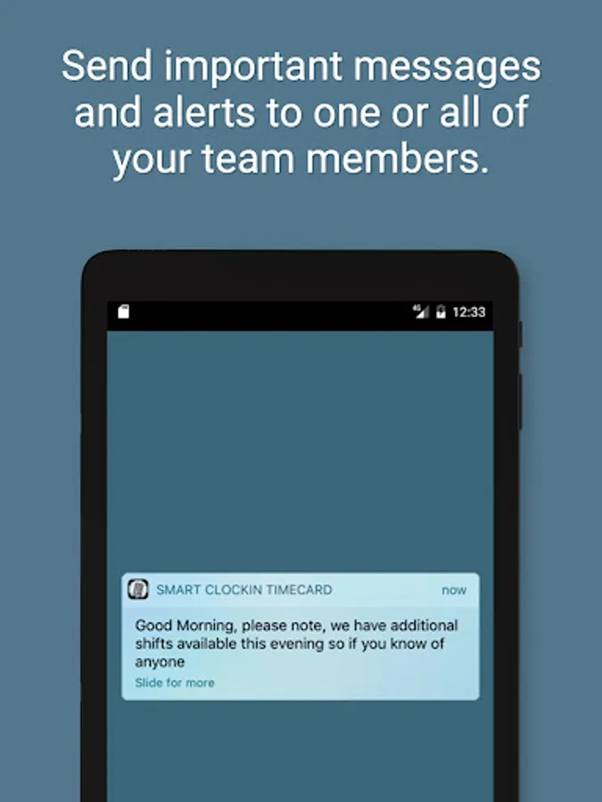 The clever thing that turns Smart Clockin from a good idea into a valuable business tool is that you can then send notifications to your customers directly without the additional cost of SMS.