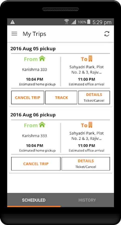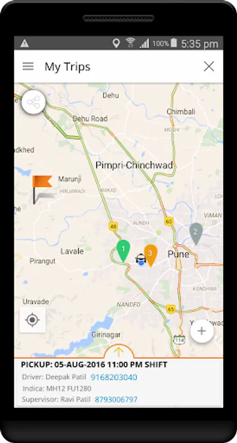 - Track your cab in real time and know the Estimated Time of Arrival (ETA)