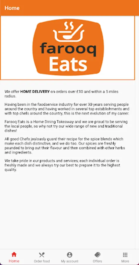 Farooq Eats is a Home Dining Takeaway and we are proud to be serving the local people, so why not try our wide range of new and traditional dishes!
