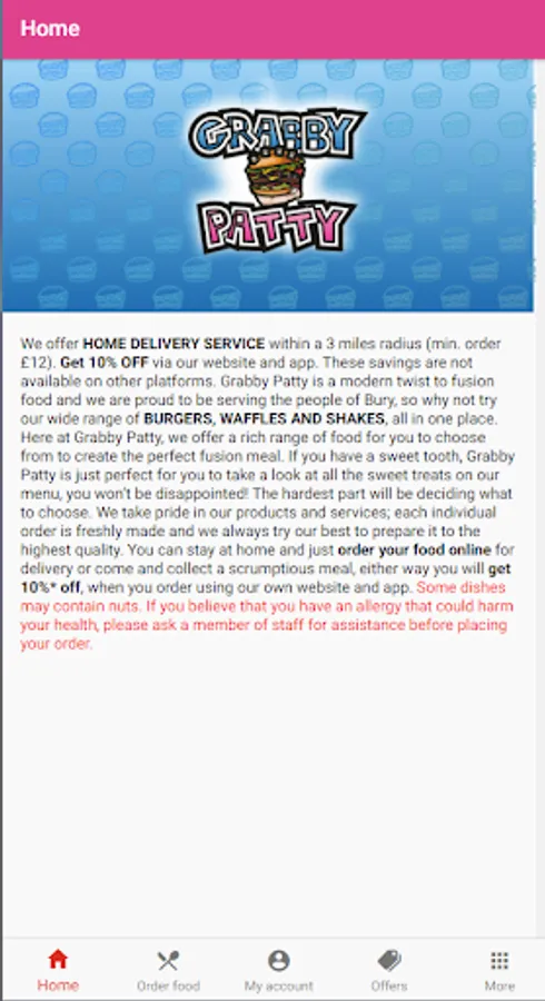 We offer HOME DELIVERY SERVICE within a 3 miles radius (min. order £12). Get 10% OFF via our website and app. These savings are not available on other platforms.