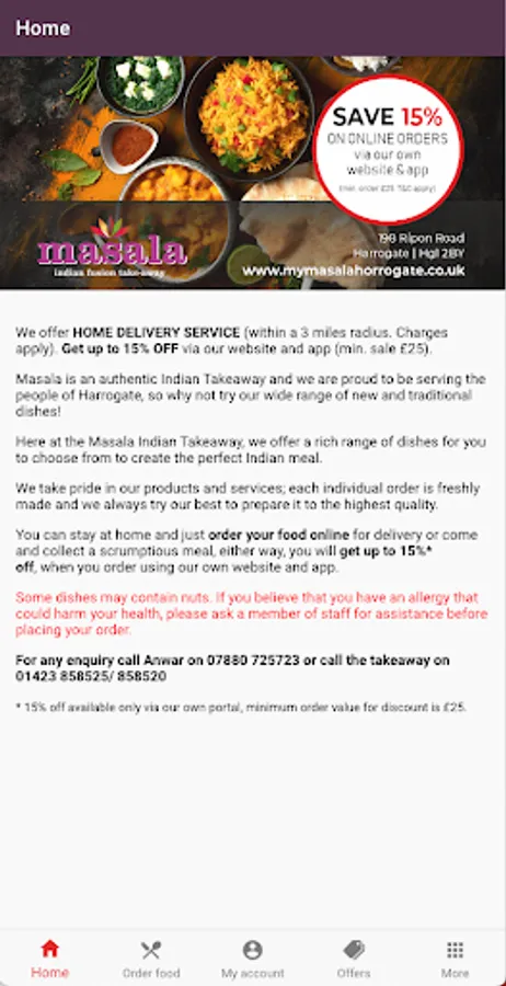 Masala, established in 2007, is an authentic Indian Takeaway and we are proud to be serving the people of Harrogate, so why not try our wide range of new and traditional dishes!