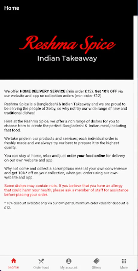 We offer HOME DELIVERY SERVICE (min order £12). Get 10% OFF via our website and app on collection orders (min order £12).