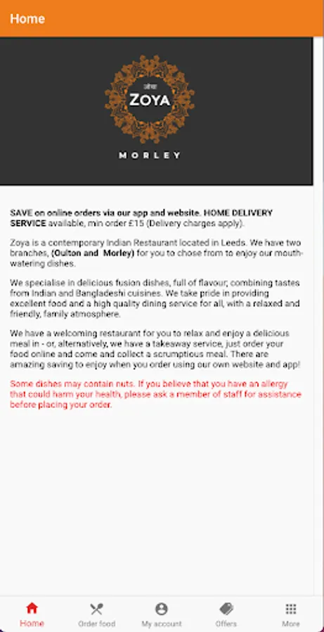SAVE on online orders via our app and website. HOME DELIVERY SERVICE available, min order £15. Delivery charges apply.