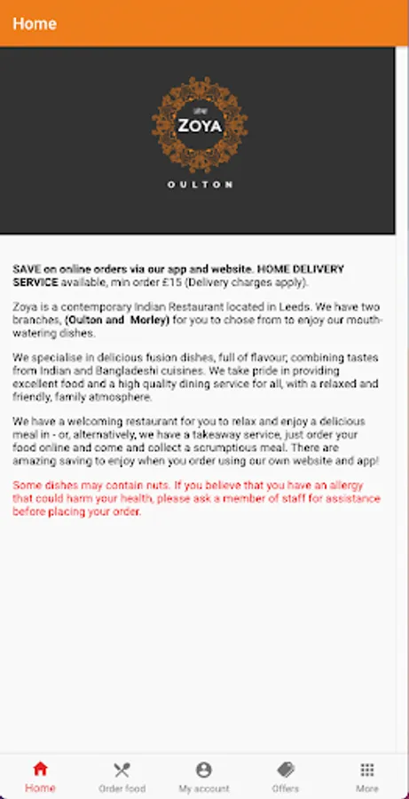 SAVE on online orders via our app and website. HOME DELIVERY SERVICE available, min order £15. Delivery charges apply.