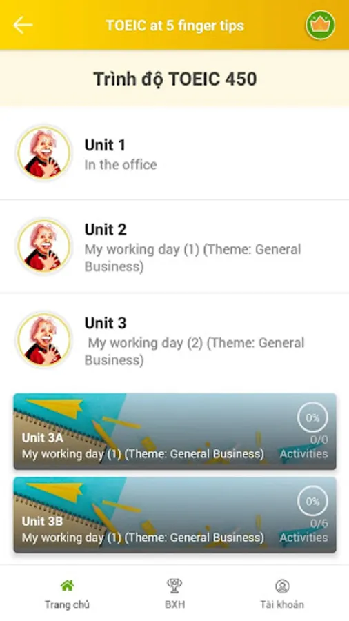 App for user to study Toeic 4 skills Reading, Writing, Listening, Speaking. There are many lessons with differrent subject.