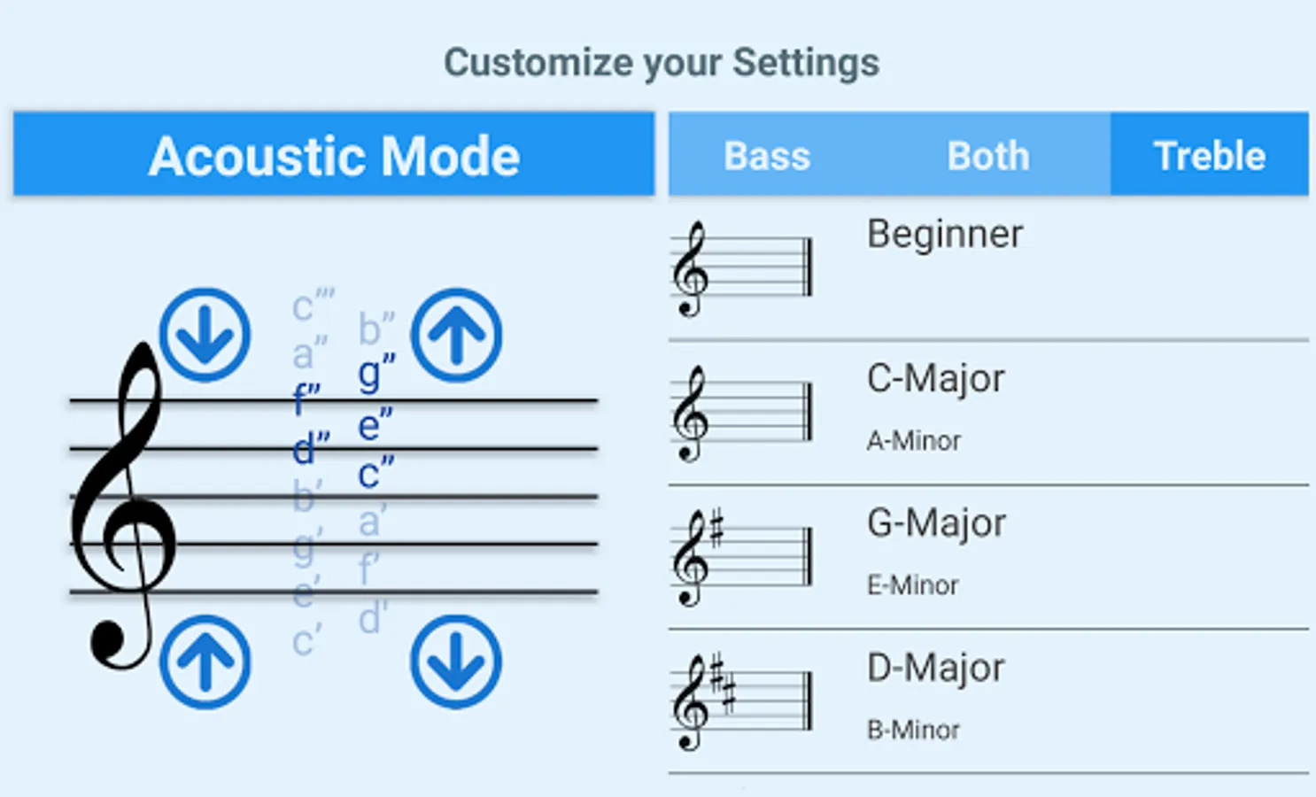 Using interactive sight reading software is a great way to practice sight reading daily. Note Trainer Home offers you a lot of customization to improve your skills efficiently. You can chose between Virtual Mode and Acoustic Mode.