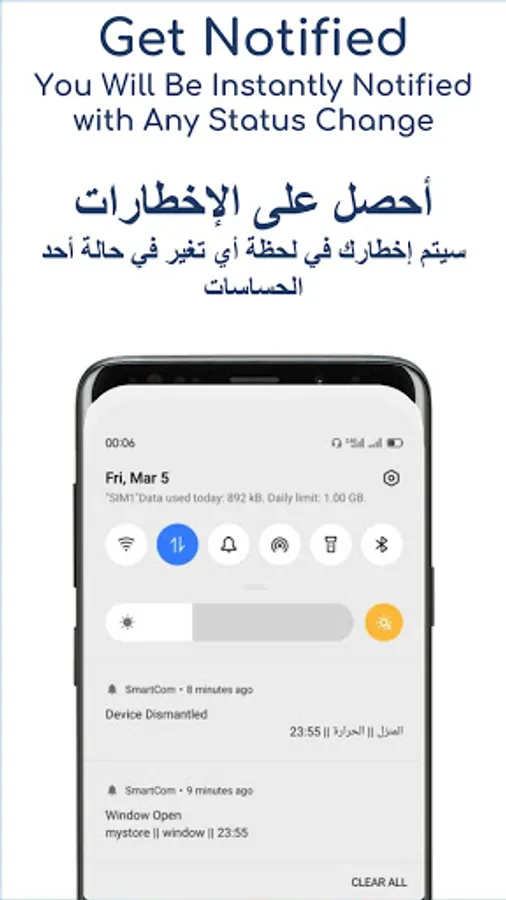 -The notifications function allows you to instantly receive information about the status of your devices.