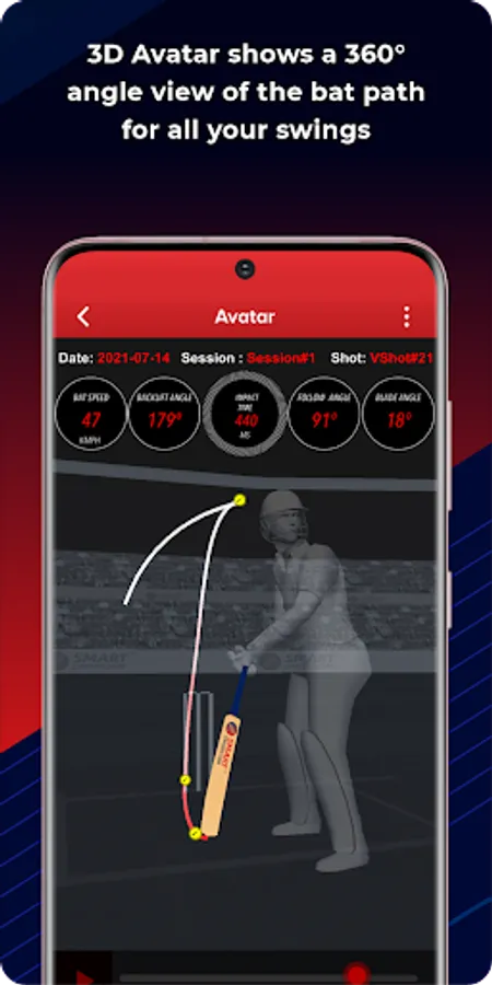 A 3D simulation of your Smart Bat swing, from the back lift to the follow through, tracks the path of your bat enabling a 360 degree view for each shot played. You can thus review your shots from any angle, online and offline.