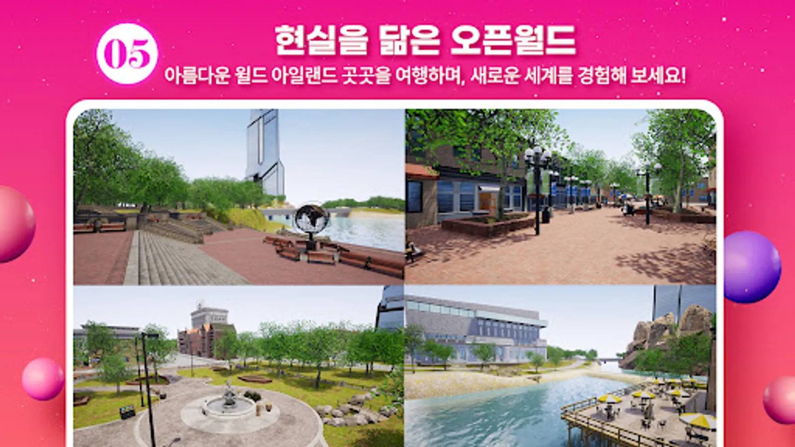 Experience all over Healing Island, including outdoor exhibition halls and exhibition streets.