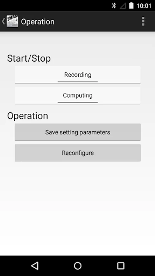 - Operations: Recording Start/Stop, Computing Start/Stop/Reset/Ack, Save Setting Parameters, Reconfiguration