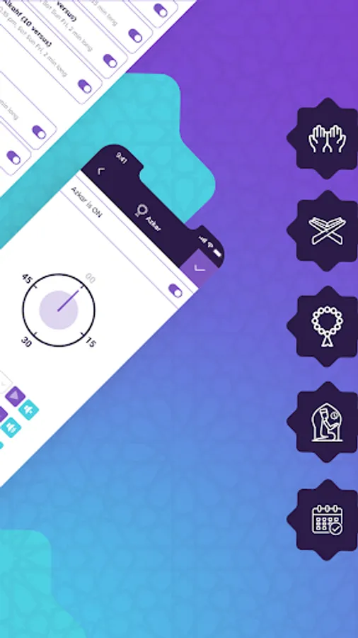 In addition, the app allows you to select zekir each 15 minutes of every hour, reminding you to stay connected with Allah throughout the day.