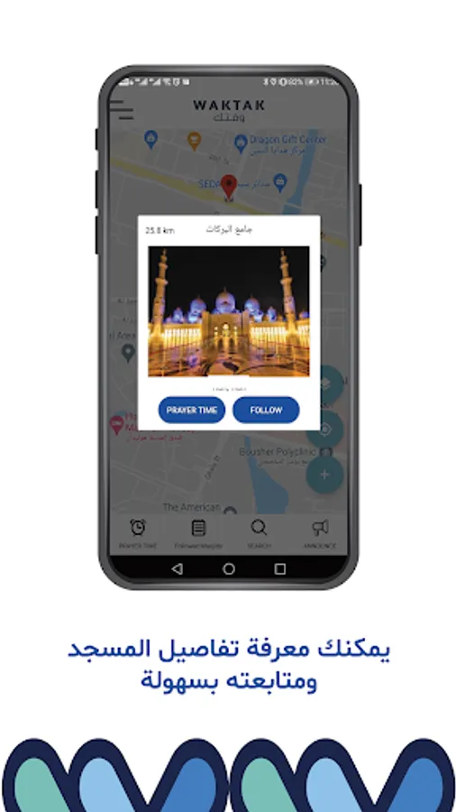 WAKTAK app shape the future of managing time and get you there on-time as no other app can do. Pray time management introducing unique way on how you get connected to Masjids, you will be connected to Imam and get from him exact pray time, in addition to other announcements. Another unique feature of WAKTAK is shifting your smartphone to silent mode (Android) automatically before praying starts.