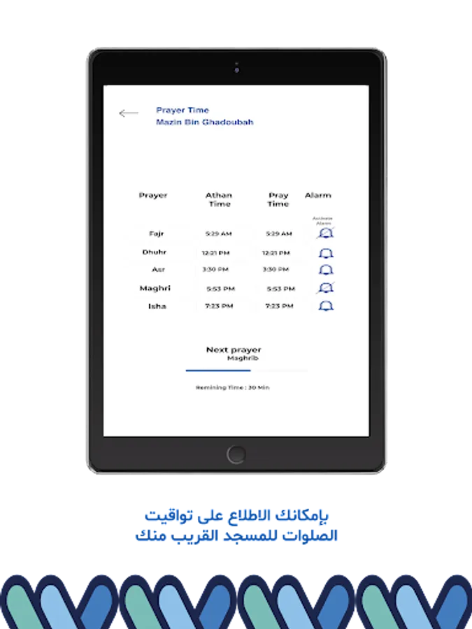 Get your smartphone shift automatically to silent mode before Iqama and avoid disturbing other prayers.
