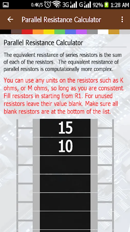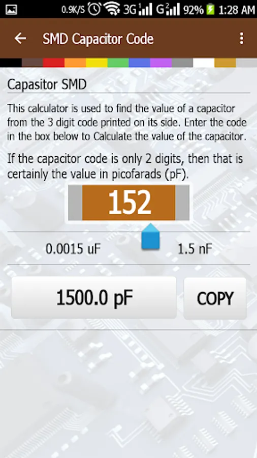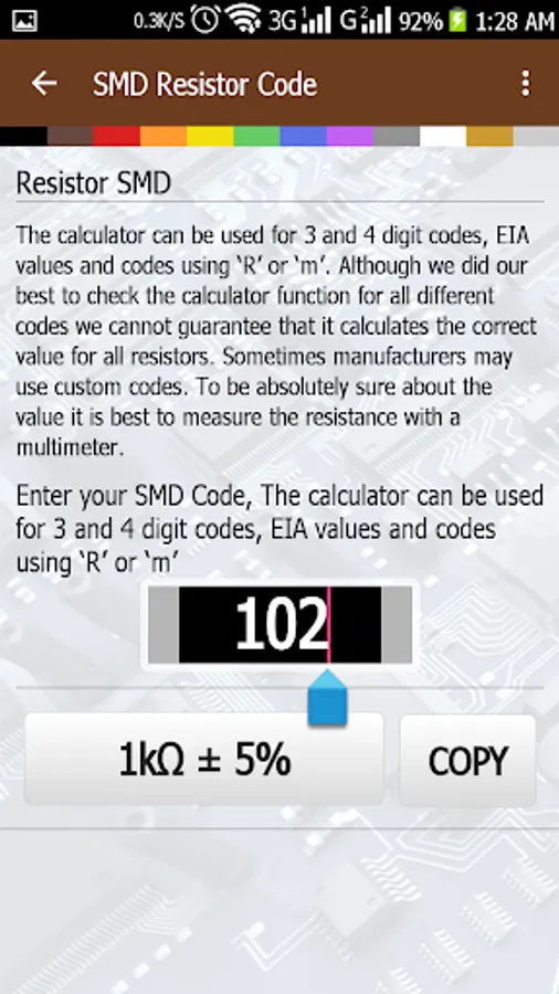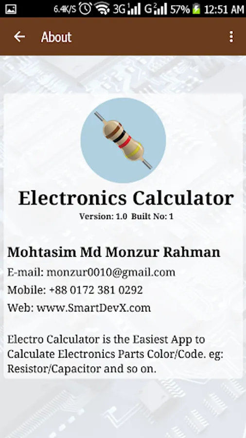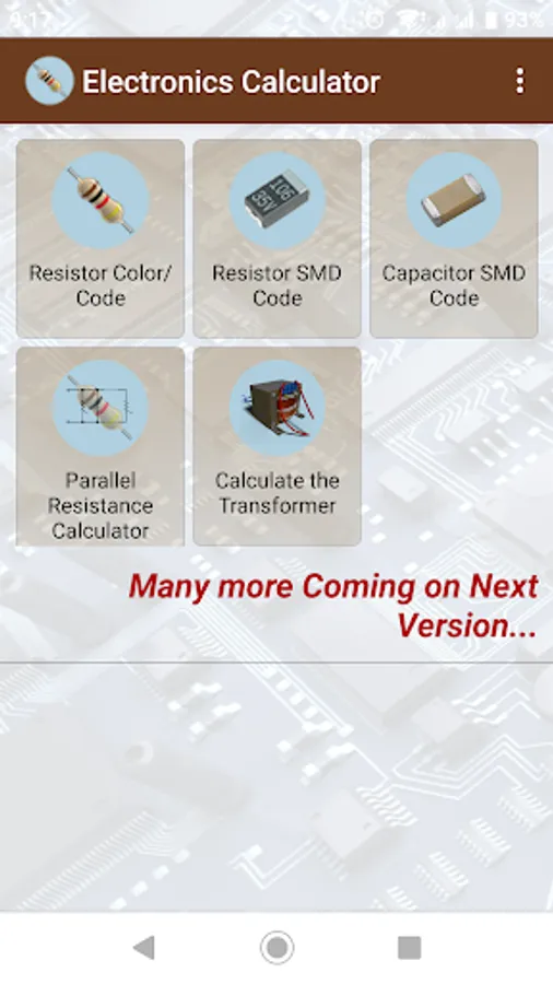Electronics Calculator is the Easiest App to Calculate Electronics Parts Color/Code. eg: Resistor/Capacitor and so on.