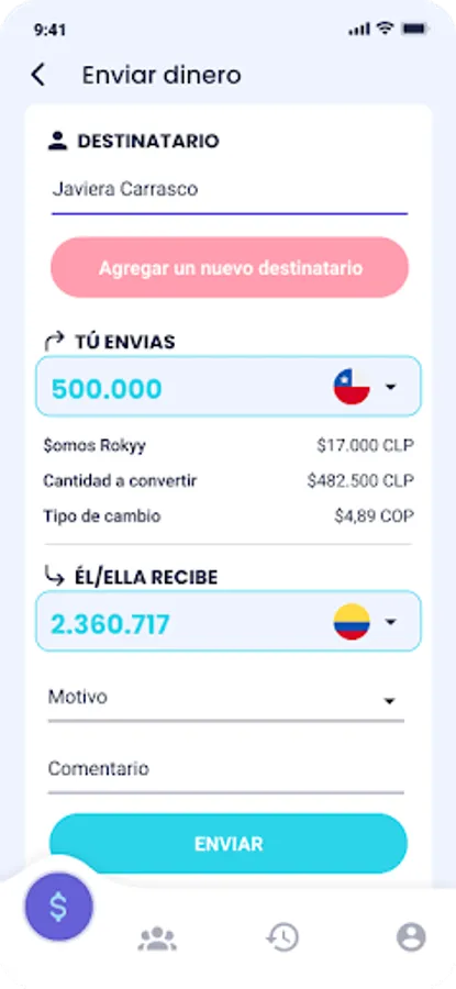 The Rokyy App will be recognized among other similar ones, because it will always be clear and transparent at all times and in all instances. The money you want to send, the value of the exchange rate (space that almost all other applications use to charge hidden fees, unlike Rokyy that will use Google's rate), the cost of the service that Rokyy will provide. Each and every one of these values will be shown in detail and you will be able to check them, because we are transparent with our people. We know that if you need to send money to another country it is because someone expects and needs it, and it is in the essence of Rokyy to facilitate that process, quickly and reliably.