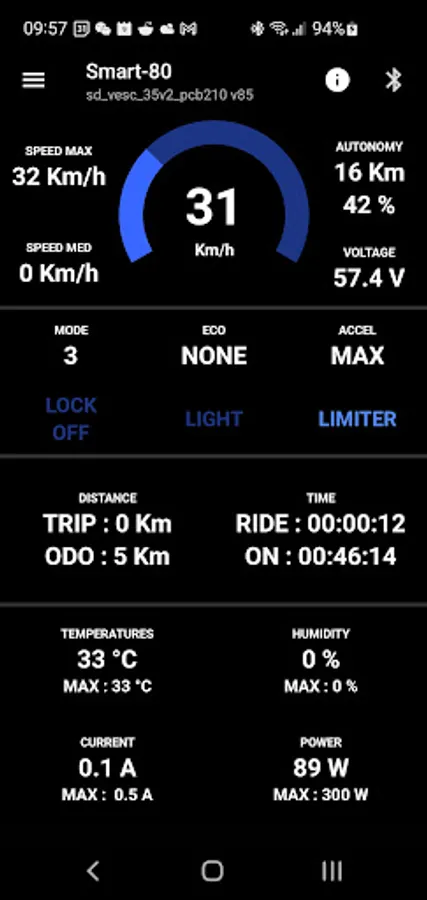 You'll have full control of your SmartDisplay device from your phone : speed, power, brake force, light ...