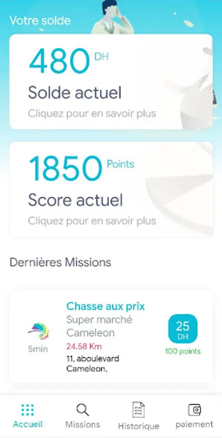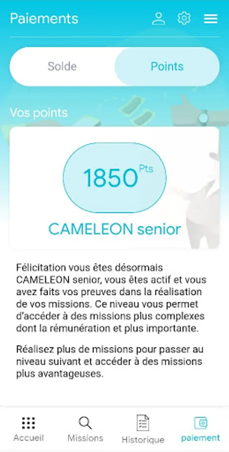 In order for our CAMELEONS to be paid, all they need to do is choose and book a mission near them, geo-locate themselves, take a few photos and answer questions.
