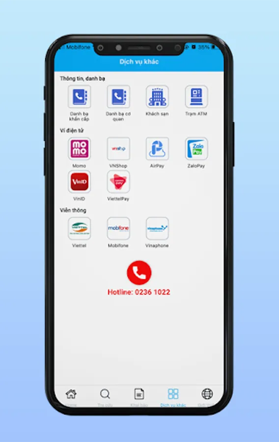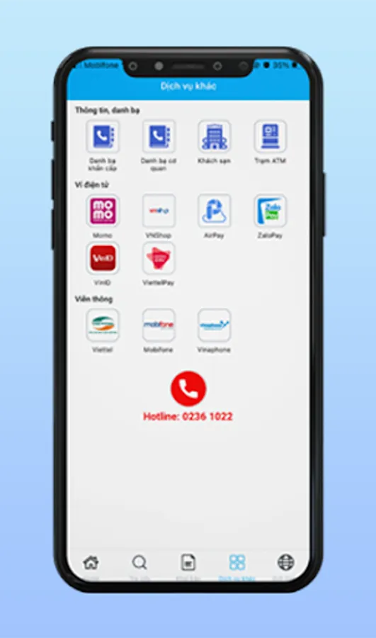 - Access hotline and utilities of Call Center 1022 such as Zalo Switchboard 1022, Chatbot 1022... through the "Utilities" section