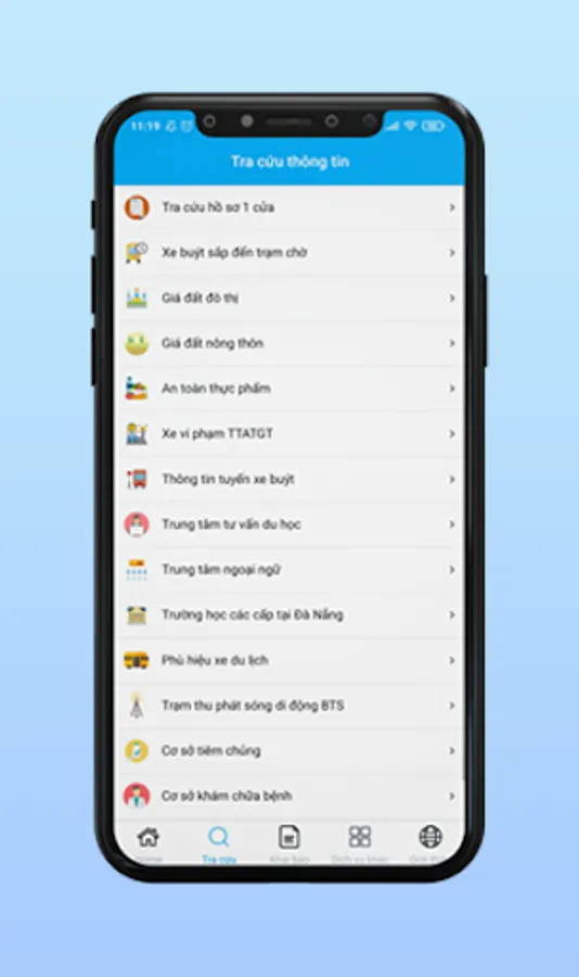 - Bus Lookup Service: use the search features, track the operation of Da Nang buses through Dana Bus application, BusMap application