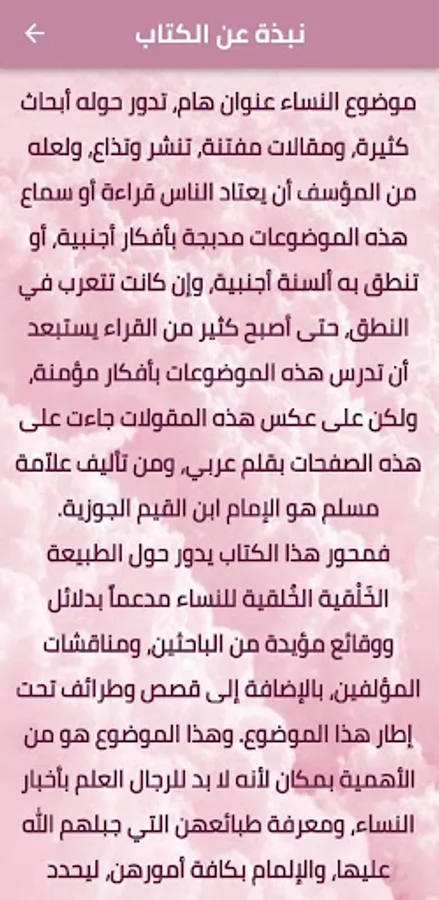 We hope that the application of the women’s news book Ibn Qayyim pdf will receive your love and be useful to you in your life, and do not forget to evaluate the application and support us with five stars.