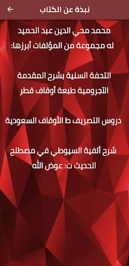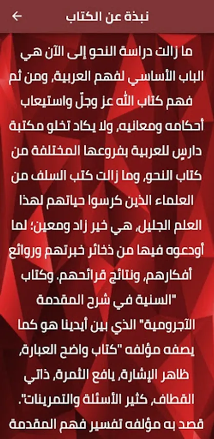 The application of the Sunni masterpiece book, with an explanation of the Al-Ajurumi Introduction pdf, contains an overview of the book and the most prominent writings of the writer Muhammad Muhyi Al-Din Abdul Hamid, and you can read the book with the enlargement and reduction of the letters in order to suit your eyes and your sight.