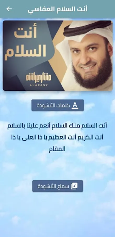 We hope that the application of the song You are Peace Al-Afasy mp3 will receive your admiration, and we also hope your support for us so that we can continue our work by placing a five-star evaluation of our application.