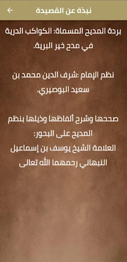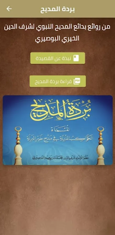 The application of the blessed Burda poem of praise pdf offers you the most beautiful Islamic poem, the poem of burda, the poem of innocence, or the planets in praise of the best of the wilderness, one of the most famous poems in praise of the Prophet Muhammad, written by Muhammad bin Saeed Al-Busairi.