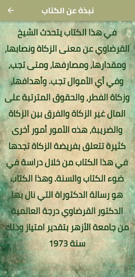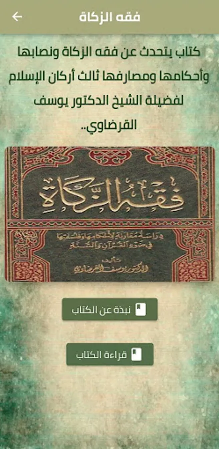 The application of the book of jurisprudence of zakat by al-Qaradawi pdf contains a glimpse of the book, and you can read the book with the letters enlarged and reduced in order to suit your eyes and vision.