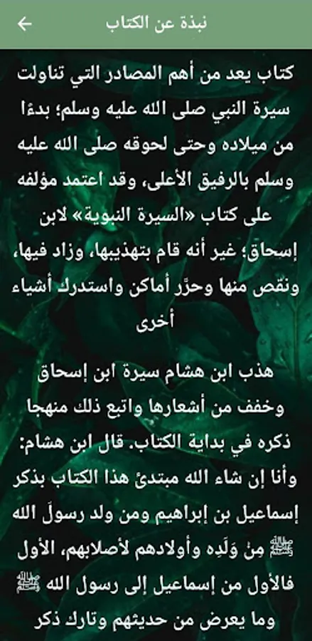 The application of Ibn Hisham’s Biography of the Prophet pdf contains a glimpse of the book, and you can read the book with the letters enlarged and reduced in order to suit your eyes and vision.