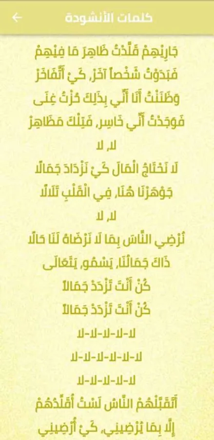The application of a chant, “Be you become more beautiful” mp3 presents you with the most beautiful Islamic chant with a wonderful, sweet and dewy voice by Hammoud Khader. It talks about humility and lack of greed, and how a person is beautiful in his heart, his faith, his good spirit and his good deeds, and not only with money and drift towards the world ... No, no, we do not need money to be more beautiful
