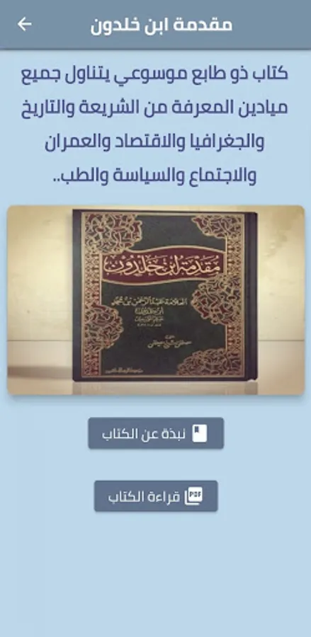 The application of the Introduction to Ibn Khaldun pdf book contains an overview of the book and you can read the book with the letters increasing and decreasing in order to suit your eyes and vision.