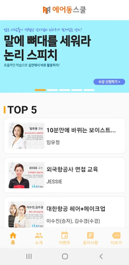 You can check the news of Air East School and simple lecture information.