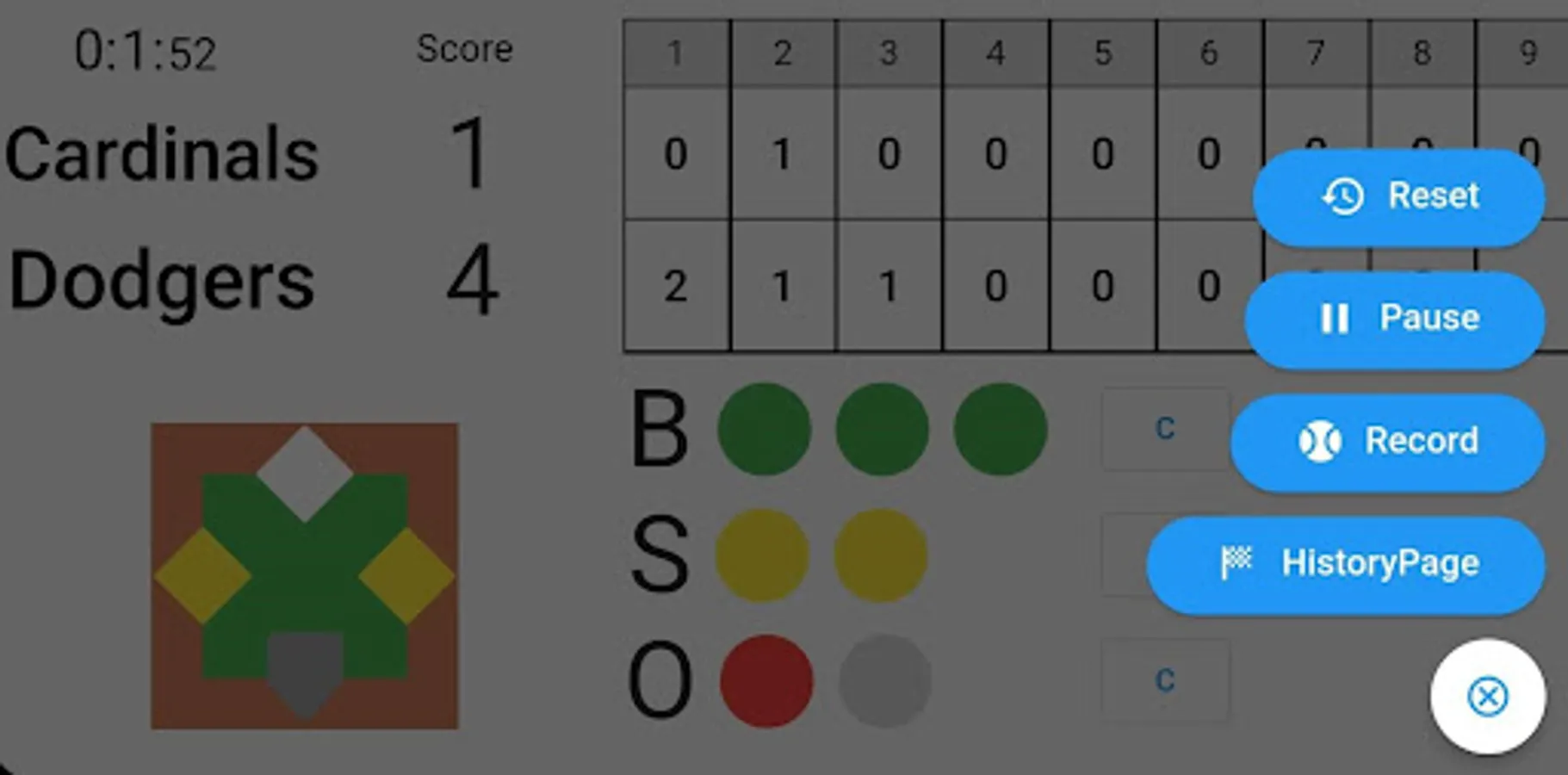 Baseball at the scoreboard. You can change the team name and view the match score. It's a scoreboard that's very easily use.